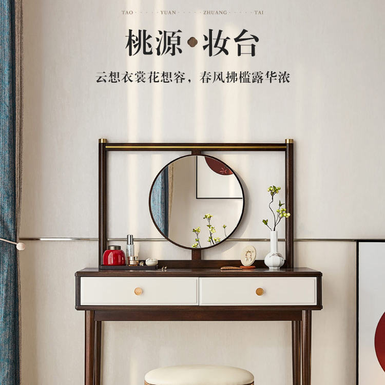 林氏木业新中式实木梳妆台卧室小型新款化妆桌轻奢收纳桌子KJ1C
