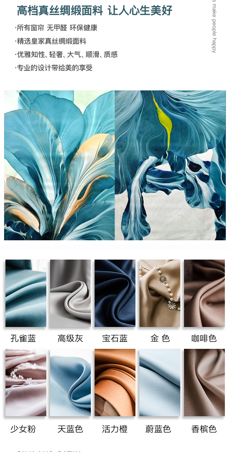 手感丝滑+真丝质感+垂感柔顺+布面细腻+遮光率高