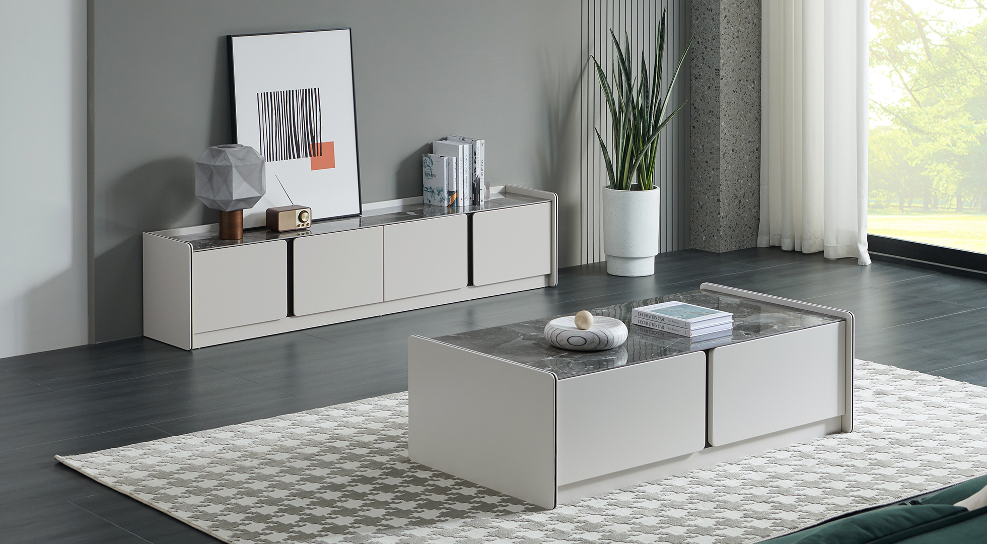 G24现代极简电视柜客厅卧室电视桌子现代简约白色地柜电视柜茶几组合柜