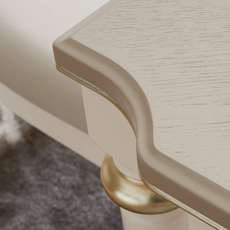 材质:木纹皮对拼贴面+中密度实木纤维板+贝母漆+橡胶木腿