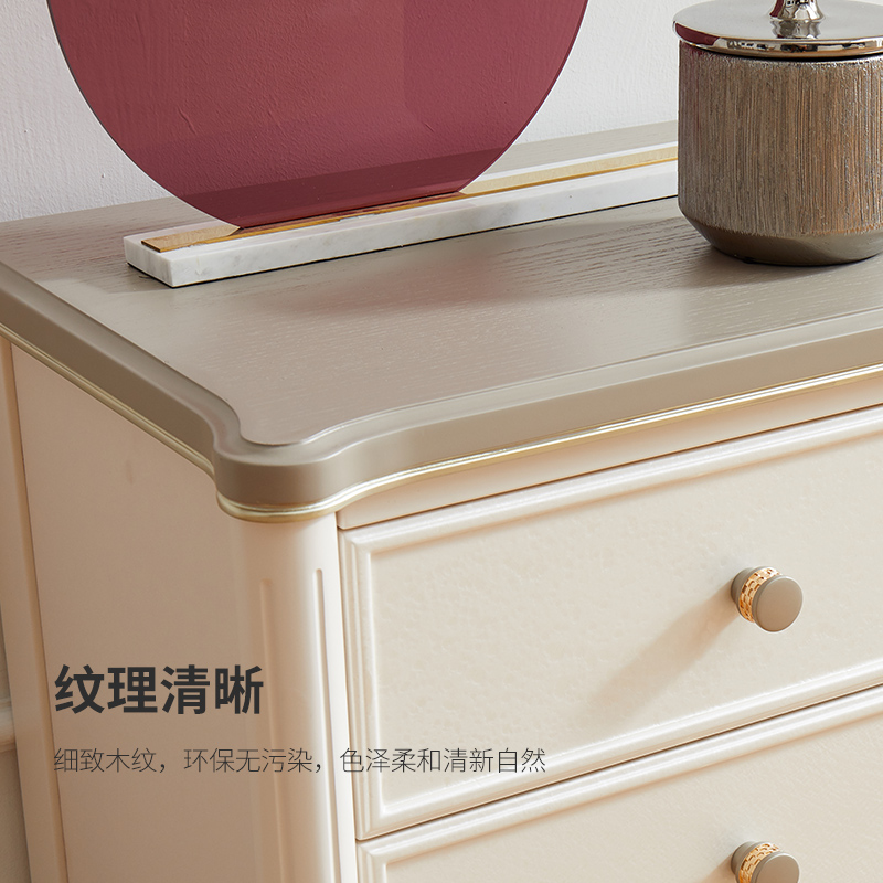 材质:实木贴皮+中密度实木纤维板+贝母漆+橡胶木腿