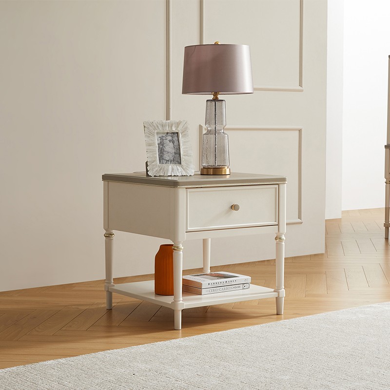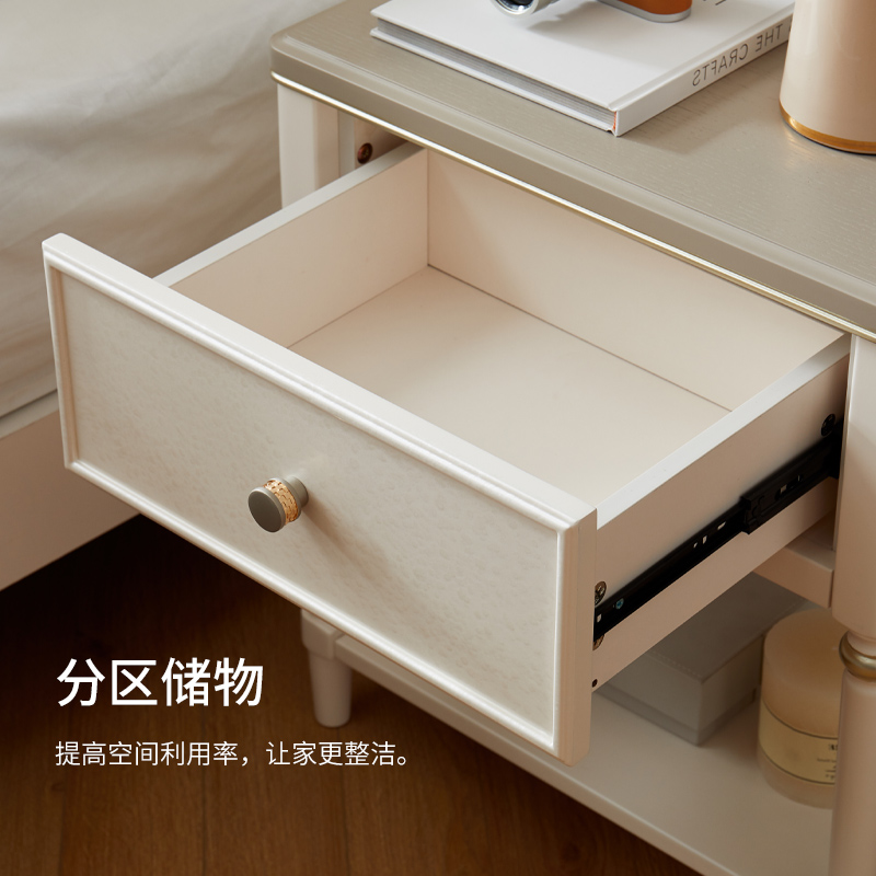 材质:实木贴皮+中密度实木纤维板+贝母漆+橡胶木腿