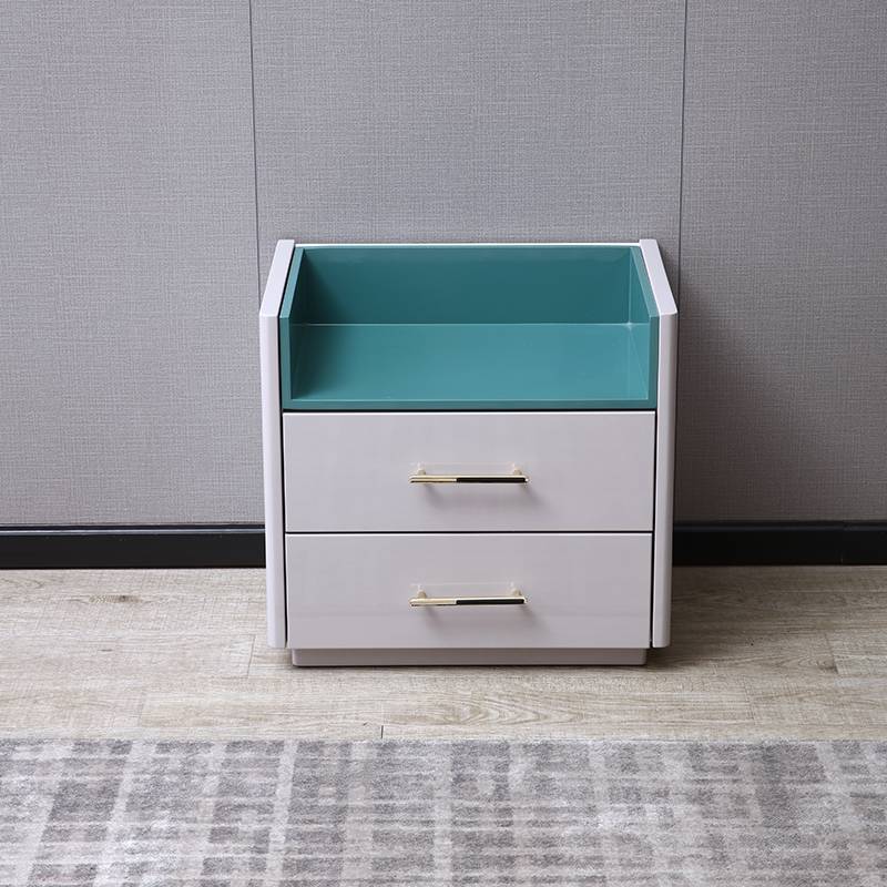 材质:高密度实木纤维板+橡胶木抽屉+K金拉手